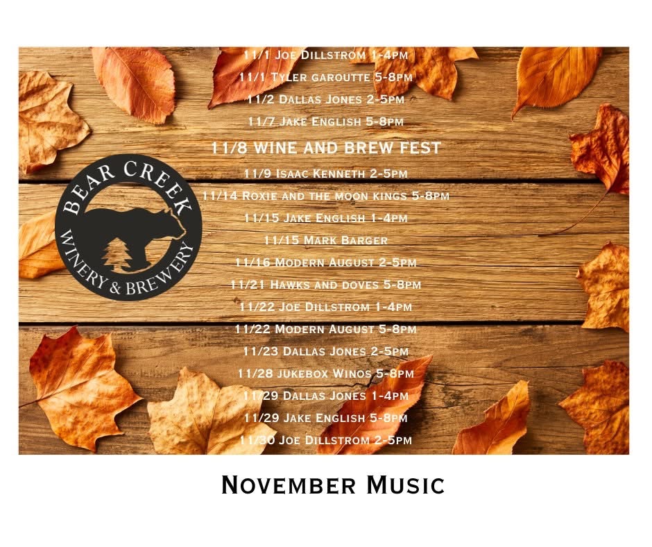 Come out to Bear Creek Winery Enjoy the food and Wine 7 Days a Week.